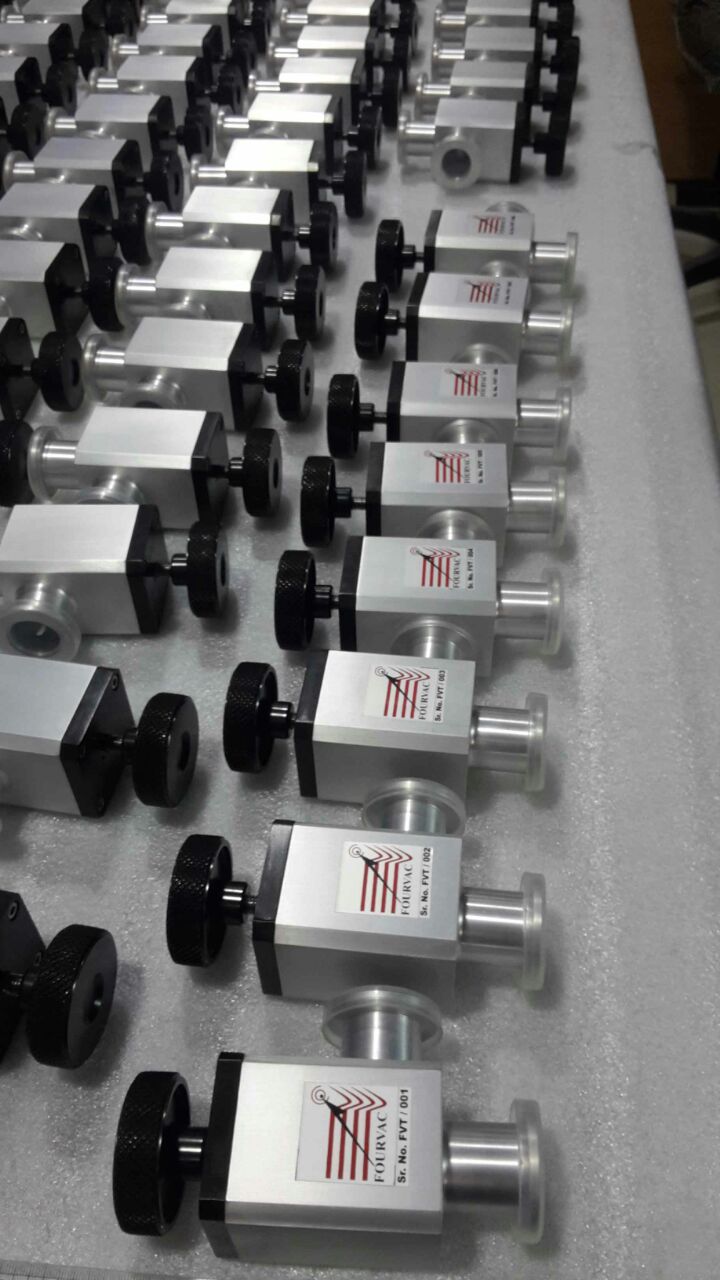 Fourvac vacuum angle and inline valves have been designed for maximum conductance and minimum size for easy installation. These valves are ideally suited for High Vacuum Application. Stainless steel hydro formed bellows as well as Viton elastomer O-rings are used for achieving vacuum sealing. Fourvac valves are available in S.S.304 or Aluminium.