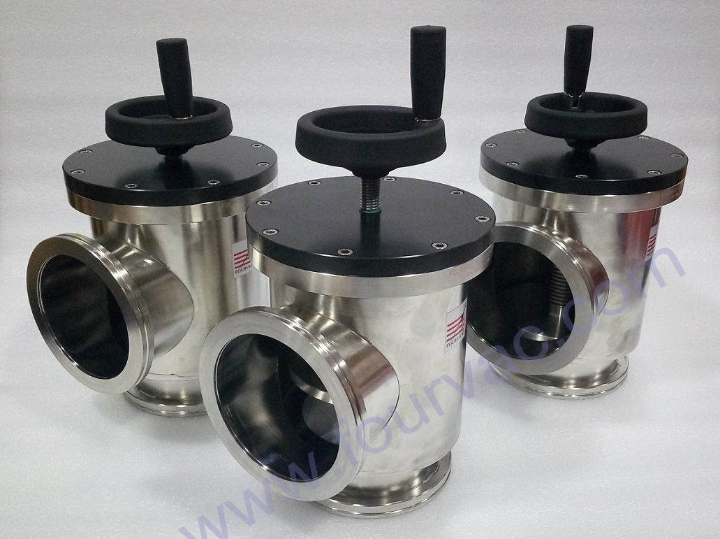 Fourvac angle and inline valves are offered in various sizes ranging from KF10 to KF50 and ISO63 to ISO 100 Port Flanges.